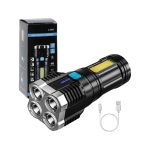 4 in1 Led Torch Lights Rechargeable Emergency Torch Light with 4 Modes USB Charge Flashlight – High Power Long Distance Beam Range Torch for Outdoor, Indoor,Hiking,Camping (4 Modes Torch)