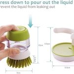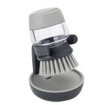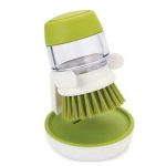 Scrubbing Brush With Non-Scratch Bristles Idea For Pots, Pans And Dishes Simply Push Button To Release Washing Up Liqiud Sturdy Storage Stand Allows Brush To Drip Dry Naturally Soap dispensing palm brush with storage stand. CARE & USE : By Hand.
