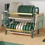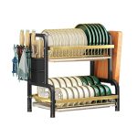– Large Capacity: The top layer of this 2-tier dish drying rack can hold up to 17 plates and pots, while the bottom layer accommodates 18 bowls. It also features a side cutlery rack for utensils and a separate holder for cutting boards, making it ideal for small kitchens and simplifying your kitchen tasks.