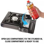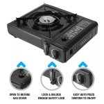 Safety Features – Highest Safety Standard: CSA (US & Canadian Standards Association) Approved Portable, Easy To Use, Reliable For Camping, Outdoor Cooking, Home Emergency Kit,Instastart ignition for matchless lighting total BTUs of cooking powe,This adjustable burner is made of metal in paint spraying, with porcelain-coated stainless grate, making it user-friendly to clean and rust-proof for long-term use,The portable butane stove only about 3 lbs. It is very convenient to go out or use. Backpacking stove is made of high quality stainless steel with high temperature resistance. Will not deform. Outdoor stove only needs to be wiped clean.,Comes with a carrying case for convenience.,Fuel: 8oz Butane Canisters